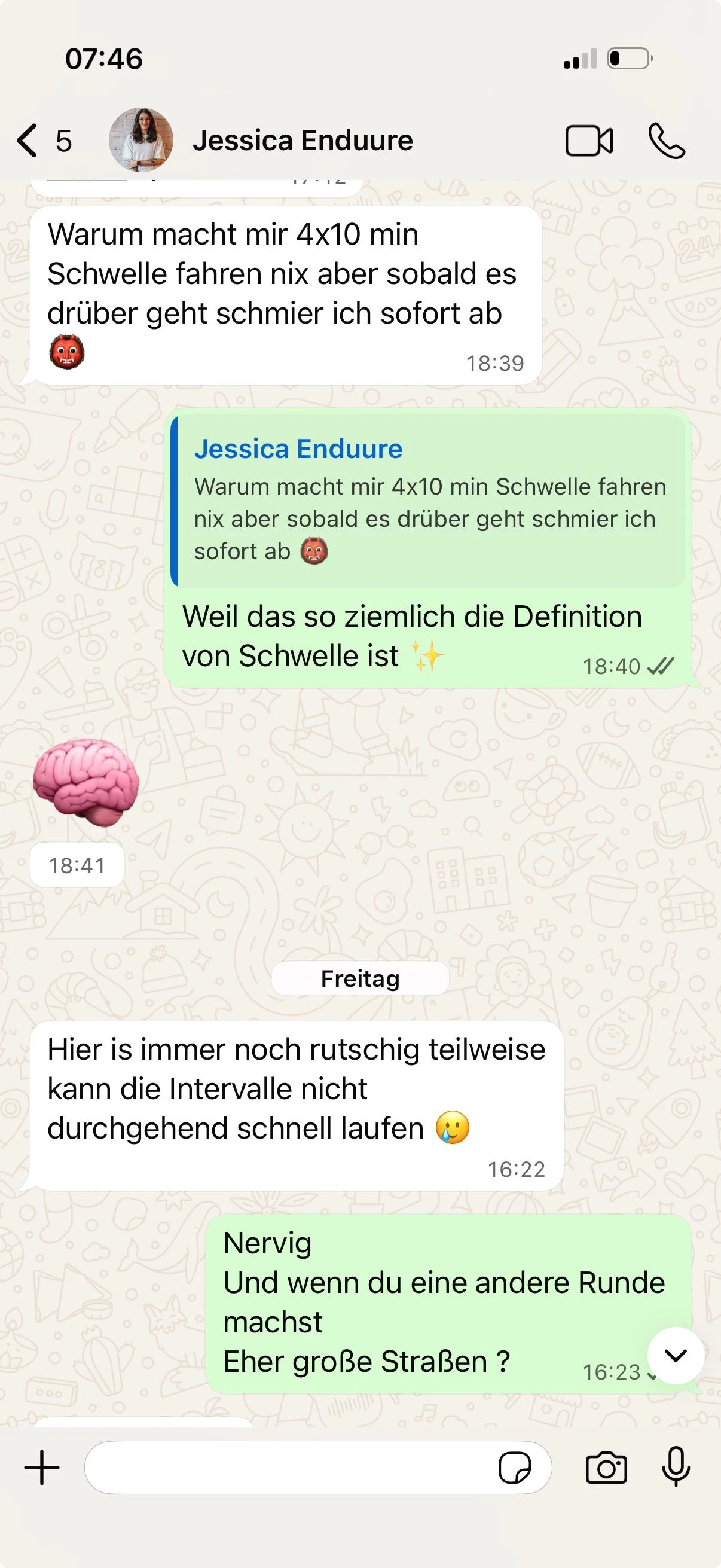 Training ist ein dynamischer Prozess, der sich nicht immer an Pläne hält. Wir sind dein direkter Partner an deiner Seite und stehen dir bei Fragen, Unsicherheiten oder nötigen Planänderungen jederzeit kurzfristig zur Verfügung.